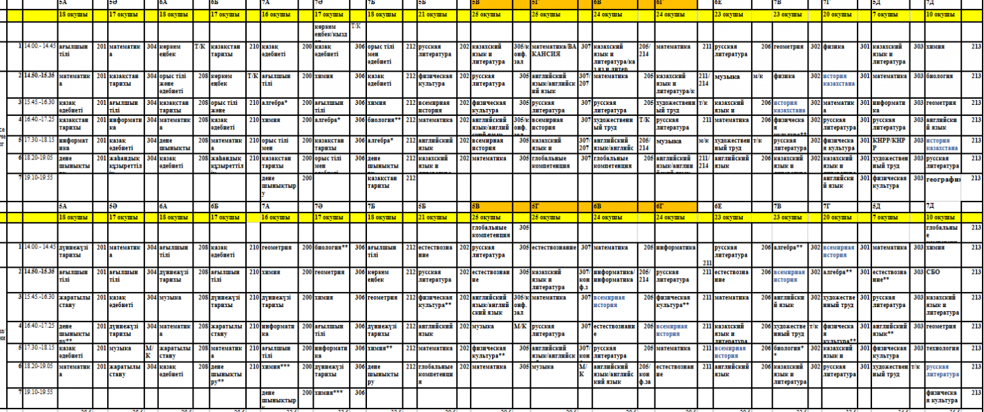 2025-2026 оқу жылының 5-7 сыныптар сабақ кестесі