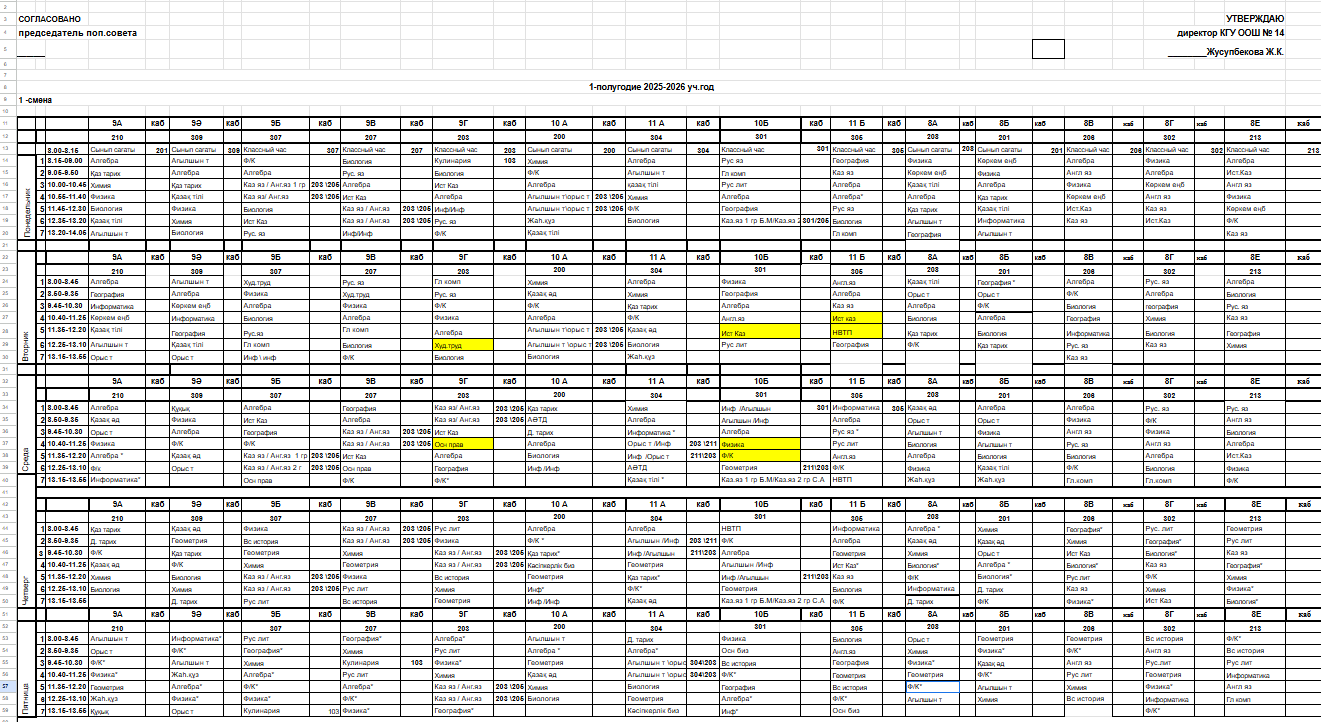 2025-2026 оқу жылының 8-11 сыныптар сабақ кестесі